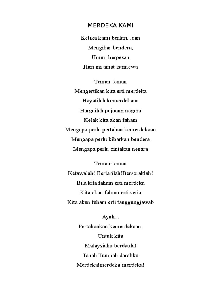 Selain itu sajak-sajak pada tahun 1960-an mempunyai skop penulisan yang lebih luas dan tidak terhad kepada suatu aliran dan gaya pengucapan sahaja. 29122009 SAJAK KUALA LUMPUR KUALA LUMPUR He is a person devoid of emotions Brought up in between stores and hotels And the noisy traffic chants devotedly Praising the hustle and bustle of life Polluted Gombak river and a piece of bitter love From the Langat river humming Chanting eternally raising praises rhyming the songs of development wrapped around your body. - Memilih tiga peserta terbaik untuk mewakili sekolah ke peringkat Daerah.