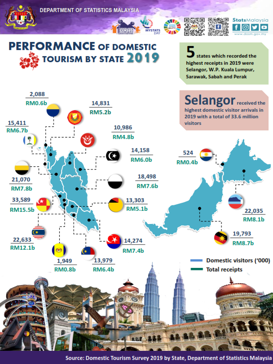Portal Kerajaan Negeri Selangor Darul Ehsan. 3092020 PUTRAJAYA 30 SEPTEMBER 2020 Mengikut statistik Survei Pelancongan Domestik 2019 mengikut negeri yang diterbitkan oleh Jabatan Perangkaan Malaysia DOSM pada hari ini Selangor ternyata mendominasi Pelancongan Domestik Malaysia pada tahun 2019. For more information and source see on this link.